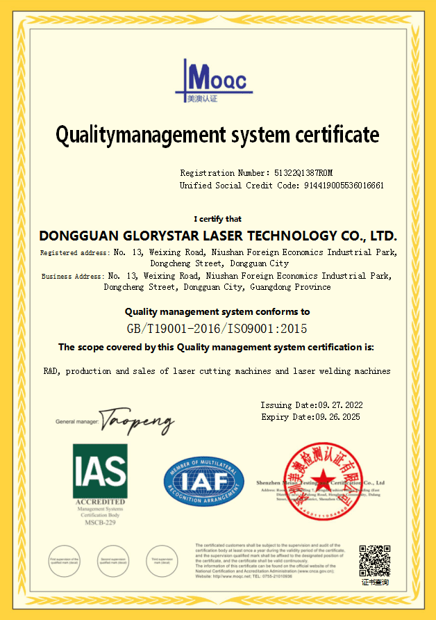글로리스타 레이저(Glorystar Laser)는 금속 절단기, 레이저 용접기, 레이저 마킹기, 절곡기 등 첨단 레이저 장비를 전문적으로 제조하는 글로벌 레이저 솔루션 기업입니다.
